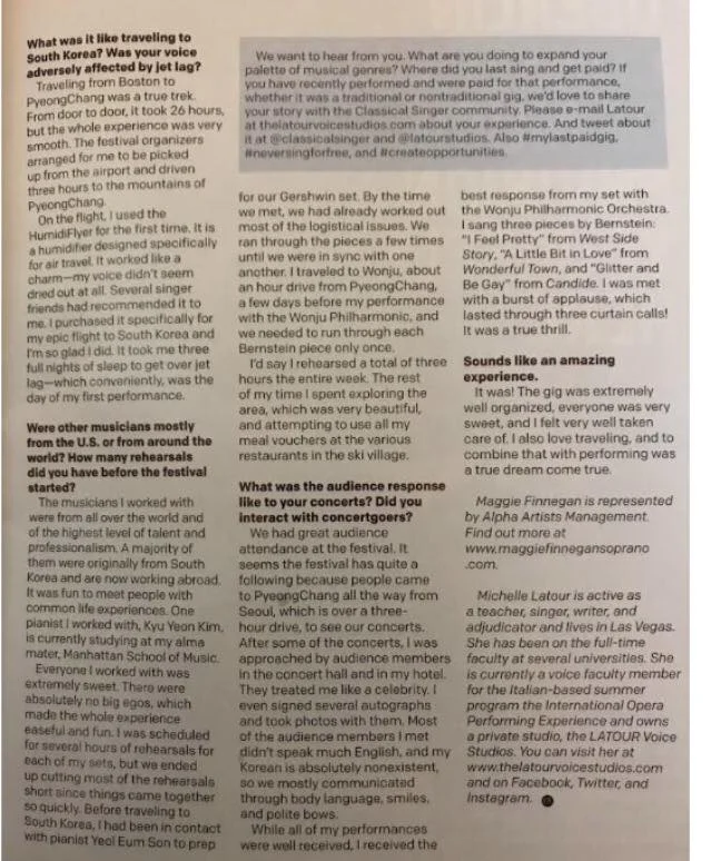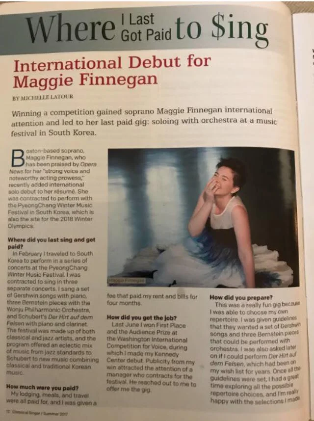 I'm featured in Classical Singer Magazine's Summer 2016 publication! Michelle LaTour interviewed me for her column "Where I Last Got Paid To Sing." I was thrilled to tell her all about my amazing experience in South Korea with the PyeongChang Winter Music Festival back in February. Pick up a copy, or read the article here!